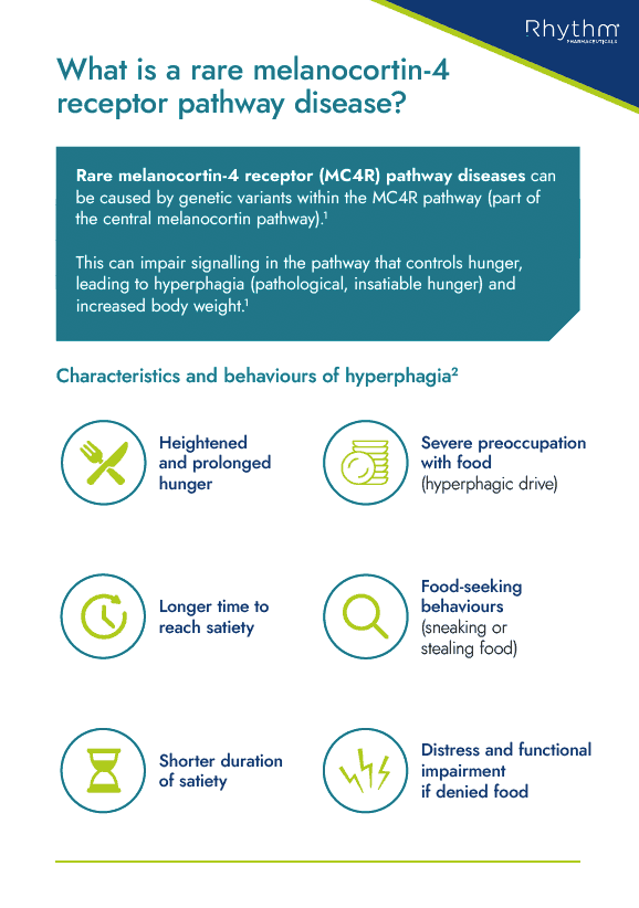 Educational information about hyperphagia, including its characteristics and behaviours and its association with rare MC4R pathway diseases
