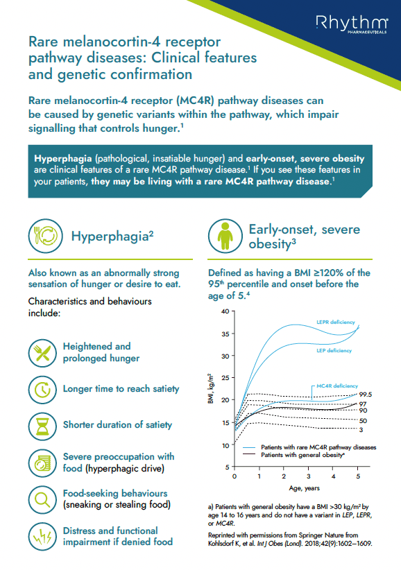 Educational information on the clinical features of rare MC4R pathway diseases and the importance of genetic confirmation once these features have been identified
